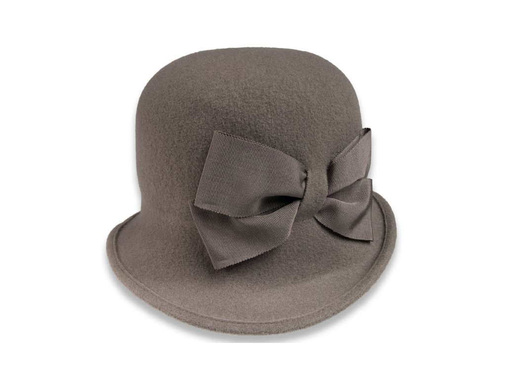 Dámský pletený plstěný klobouk s mašlí TONAK / vlna / černá, šedá, šedohnědá