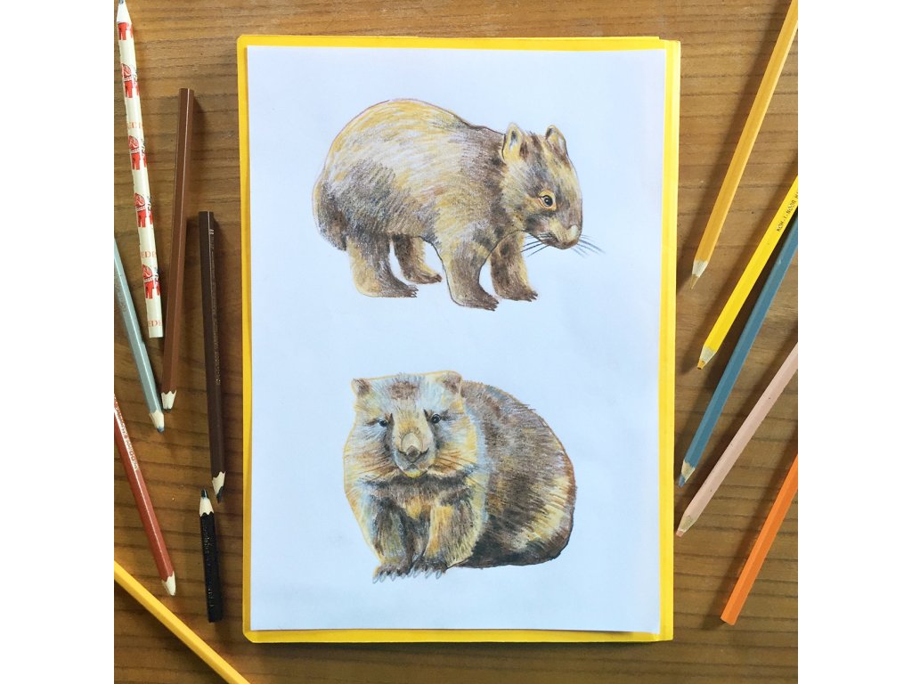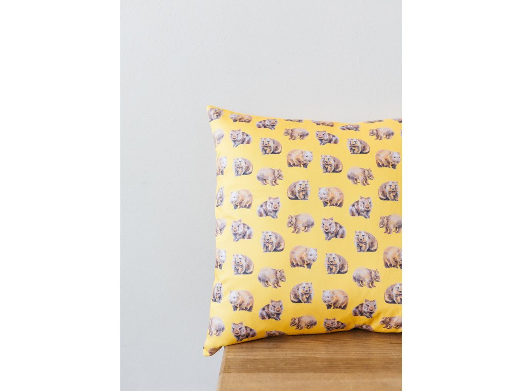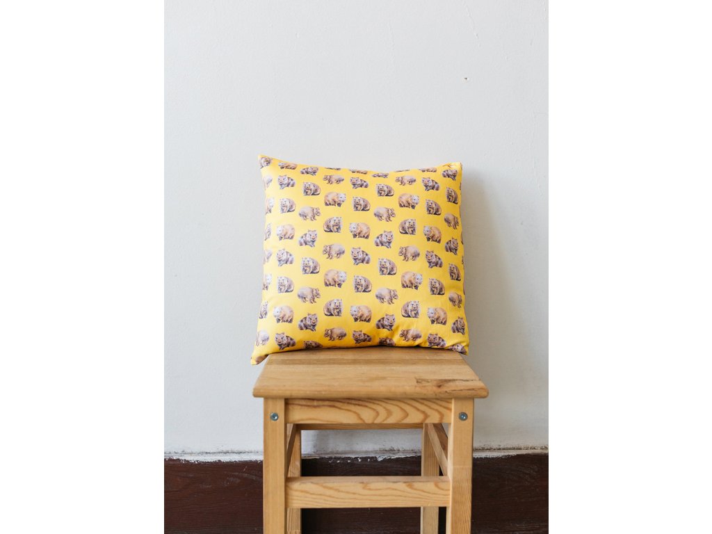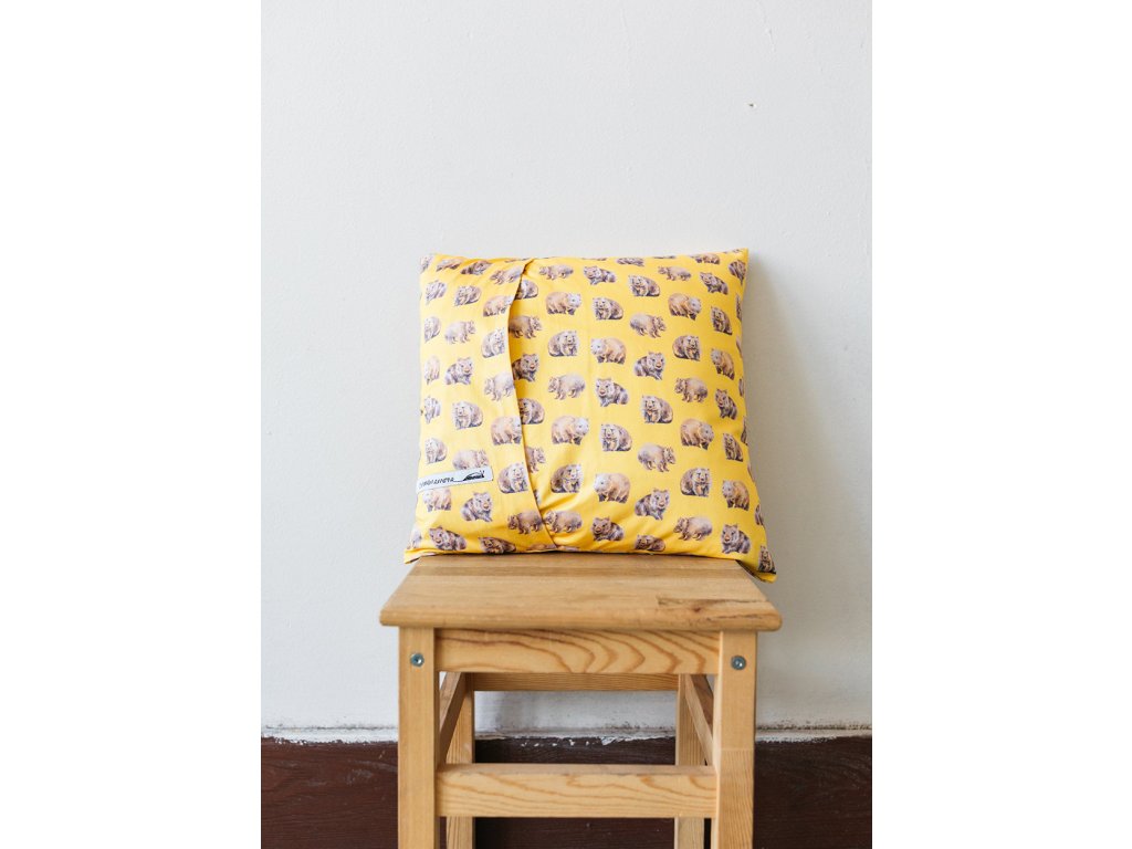 Povlak na polštář s obrázkem wombata. Ruční práce, potisk podle původních barevných kreseb tužkou.