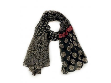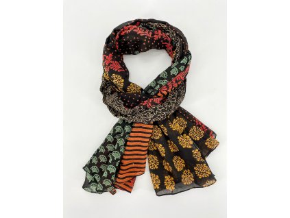 Šál z viskózy a bavlny s třásněmi. Tento produkt najdete také v naší kamenné prodejně, v altánu ve Františkánské zahradě na Praze 1.