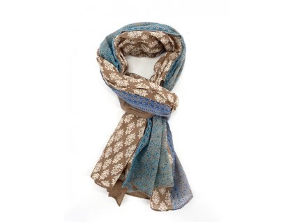 Šál v přírodních barvách, bude se snadno kombinovat s ostatním oblečením. Tento produkt najdete také v naší kamenné prodejně, v altánu ve Františkánské zahradě na Praze 1.